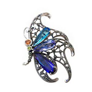 925 ayar gümüş üzeri oksit kaplamalı, renkli zirkon taşlı ve markazit taşlı kelebek model broş. Günümüzün trendlerine uygun 925 ayar gümüş, renkli zirkon ve markazit taşlı yaka iğnesi veya broş aynı zamanda eşarp iğnesi olarak da kullanılabilir. Şıklığınızı tamamlayarak severek ve sürekli kullanacağınız bir gümüş yaka iğnesi modeli olacaktır. Diğer gümüş yaka iğnesi veya broş çeşitleri ve fiyatları için broş kategorimizi ziyaret edebilirsiniz.